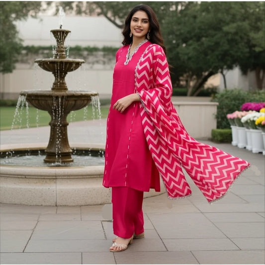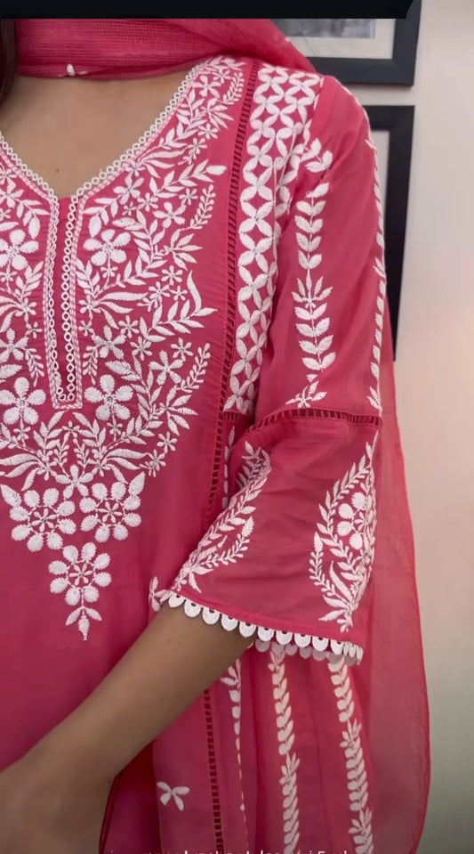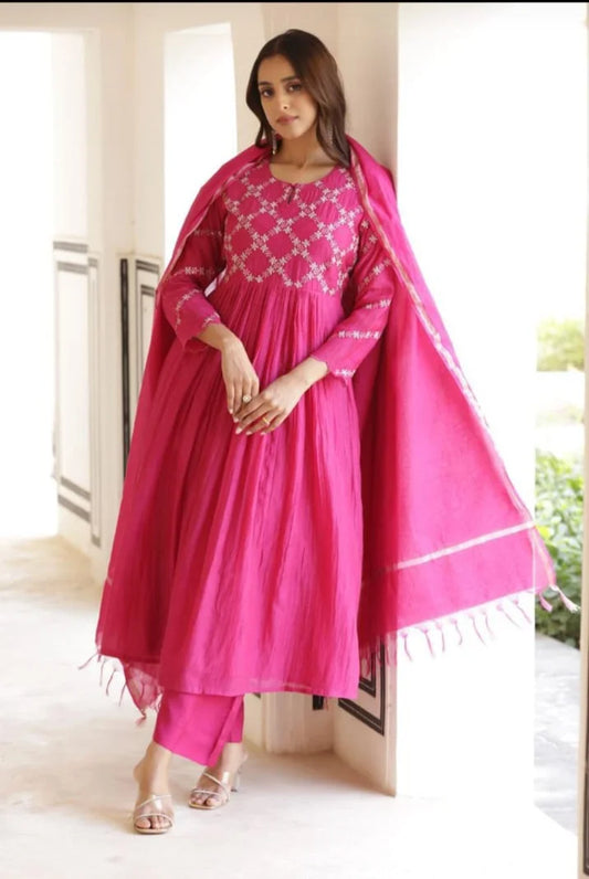 Beautiful Embroidered Mul Chanderi Suit in Royal Pink