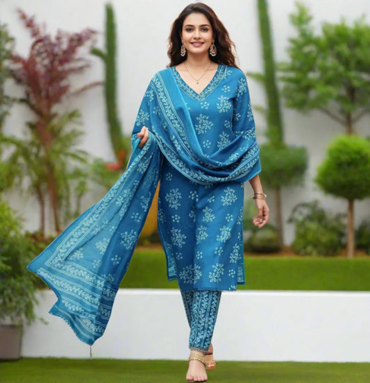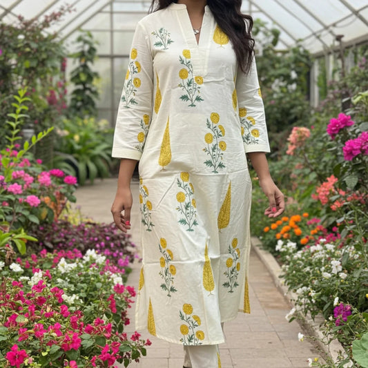 Elegant Summer Perfect Handblock Print Cotton Kurta Set