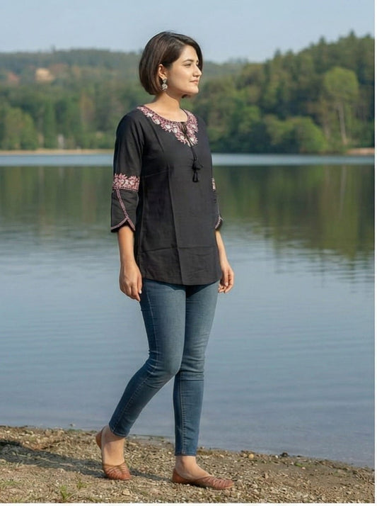Timeless Black Embroidered Short Kurta