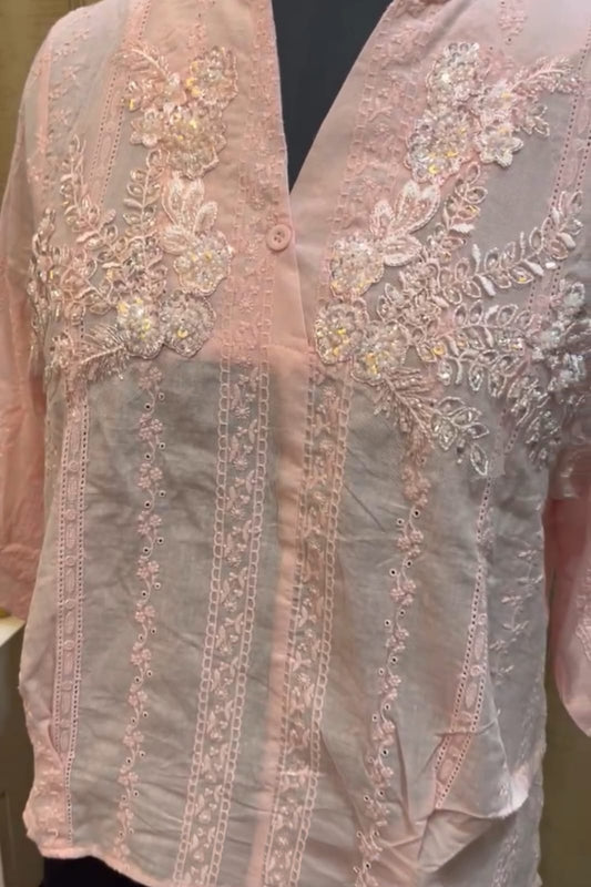 Out Of Stock, Sold Out!Light Peach Top With Embroidery And Sequin Details