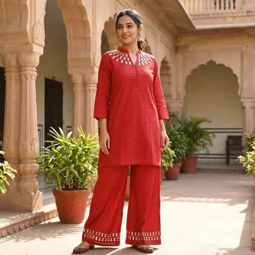Elegant Cotton Embroidery Work Co-ord Set