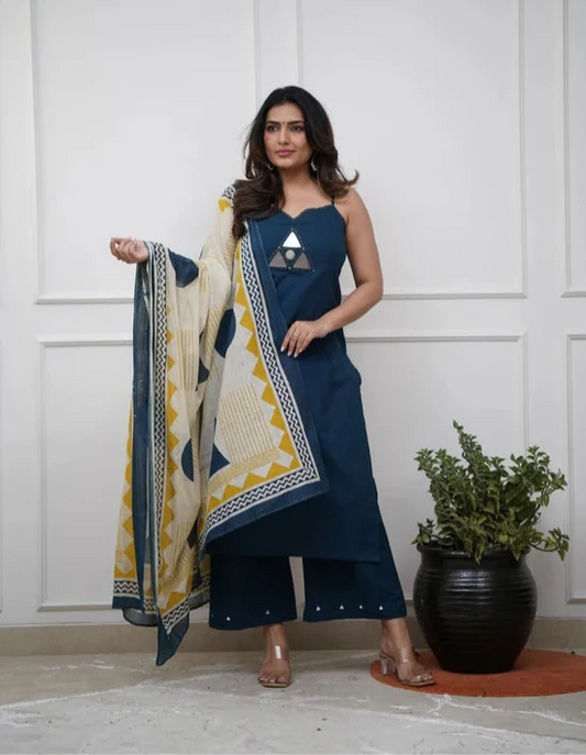 Beautiful Navy Blue Hand Block Print Kurta Set