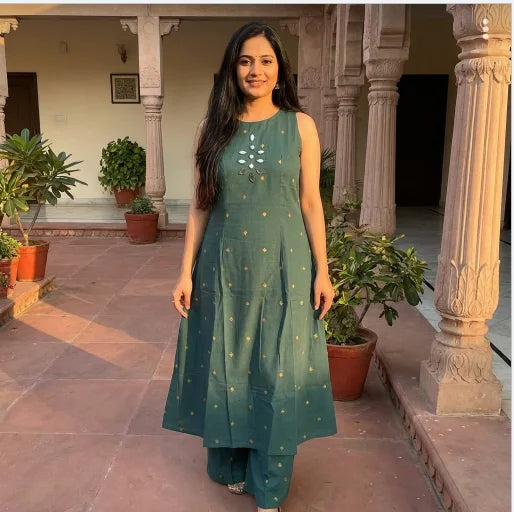 Elegant Teal Green Sleeveless Kurta and Palazzo Pant Set