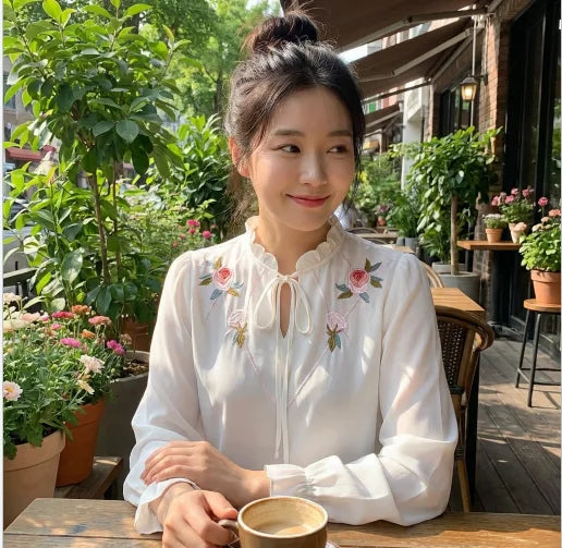 Elegant Long Sleeved Top with floral embroidery