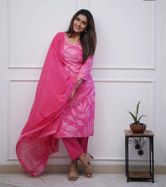 Elegant Pink Printed Suit In Luxurious Soft Cotton