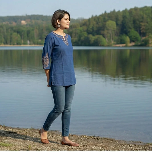 Sophisticated Indigo Short Cotton Kurti