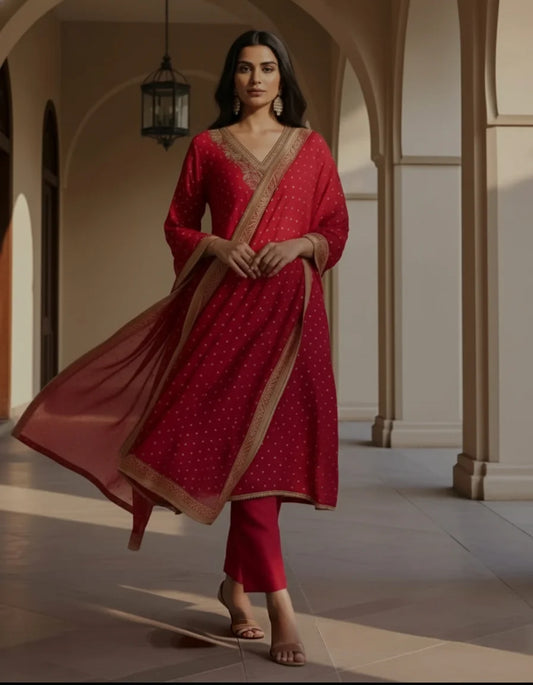 Premium Banarasi Silk Suit in Red