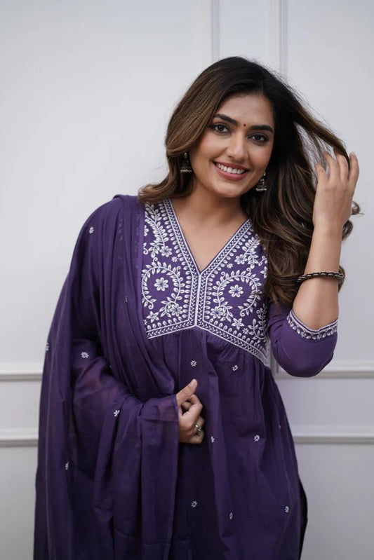 Beautiful Embroidered Mul Chanderi Suit in Royal Pink