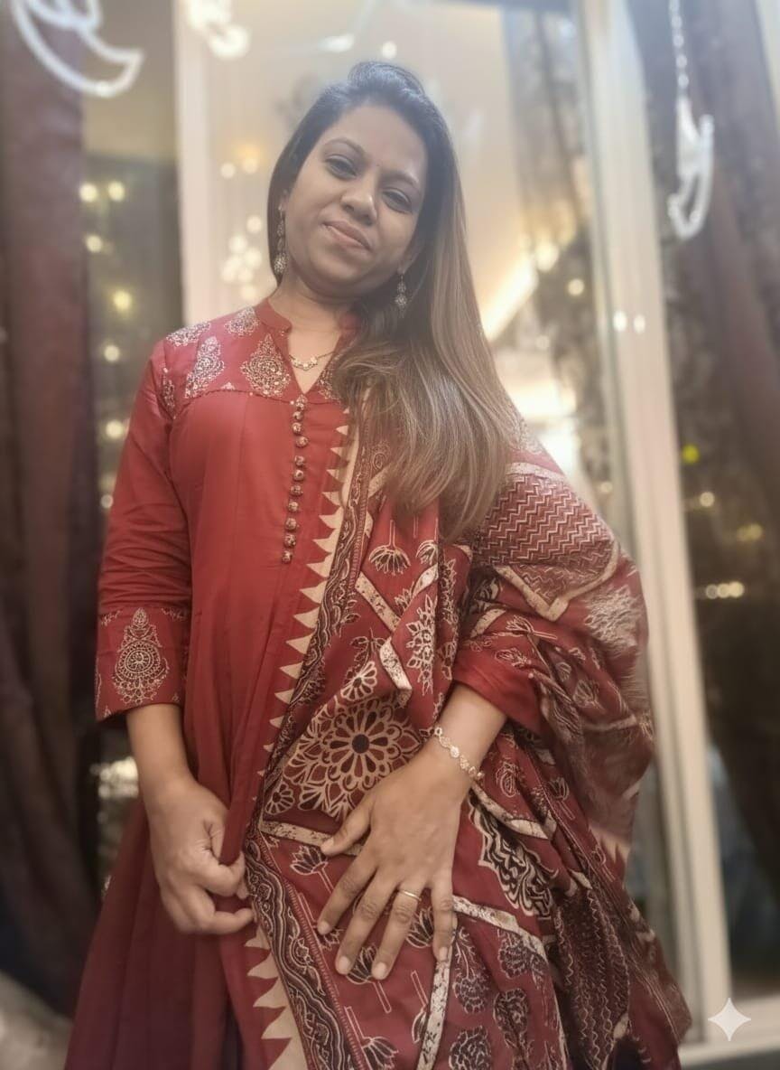 Elegant Pure Cotton Ajrakh Print Anarkali in Rust