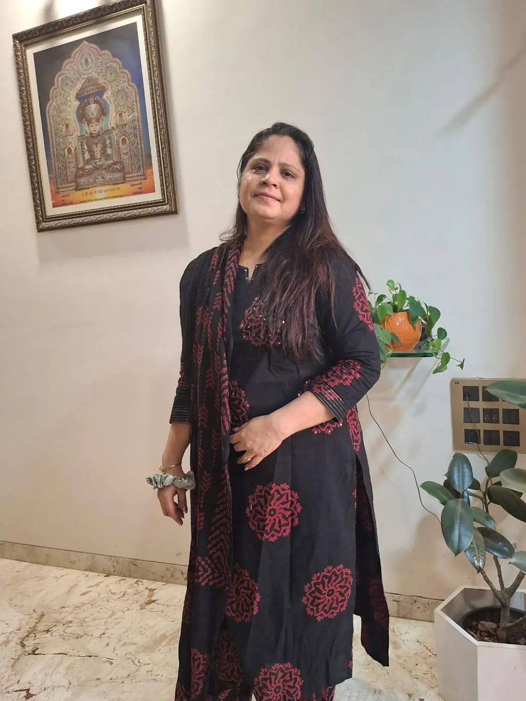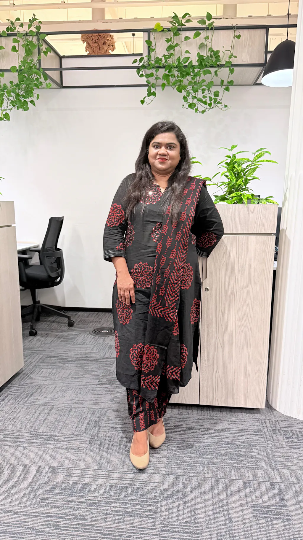 This elegant black ensemble features block print cotton fabric adorned with intricate thread work on the yoke and fashionable lace accents on the sleeves, complemented by a printed dupatta and matching pants. Perfectly suited for casual outings or social gatherings.