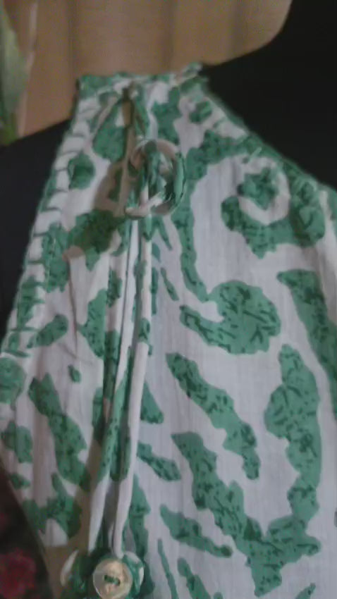 Discover effortless style with this charming sleeveless top, designed with a flattering A-line cut that works beautifully for any body type. The stunning green and white hand-block prints features a round neck with tassels. Crafted from soft, breathable cotton , it keeps you comfortable and cool throughout warm days. Whether you're dressing it up or keeping it casual with your favorite jeans, this versatile piece celebrates traditional craftsmanship while offering modern everyday wearability. Perfect for those who appreciate quality fabrics and timeless design