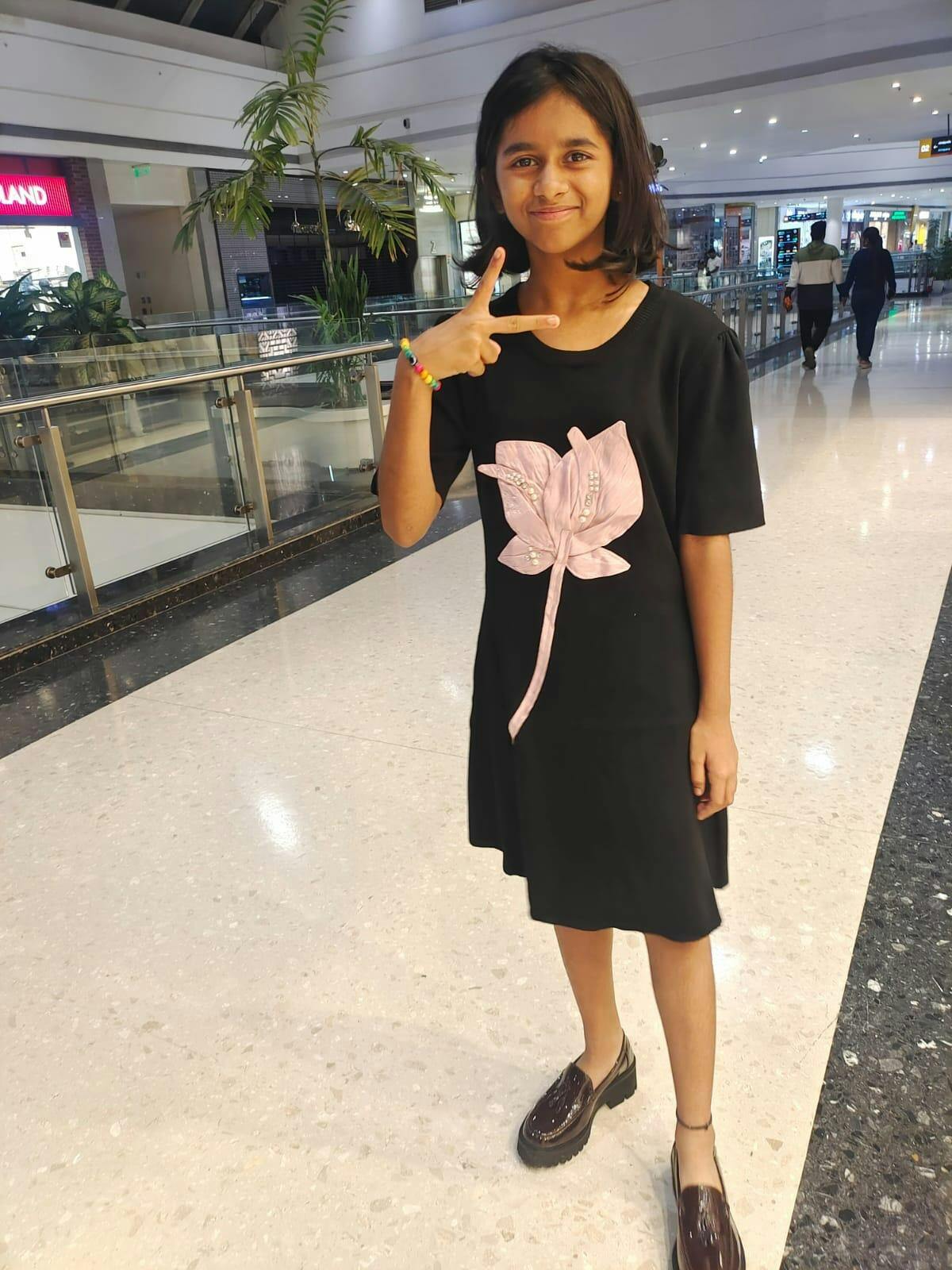 Step into the season with our charming black t-shirt dress, Adorned with a serene pink lotus design in satin, embellished with shimmering pearls and studs, this black t-shirt dress brings understated sophistication to your daily wardrobe.